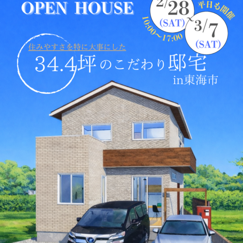 【OPEN HOUSE】 住みやすさを大切にした 34.4坪のこだわり邸宅 in東海市 開催日時 2